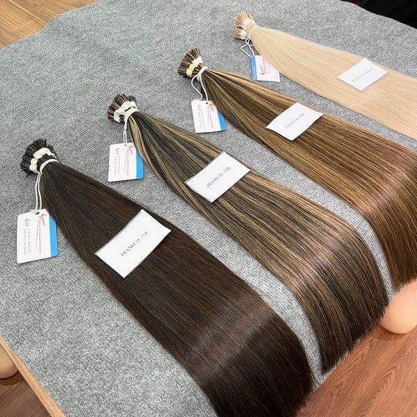 Soldes de Noël : Extensions de cheveux Thanh I-Tip Remy lisses, 100 % cheveux humains vierges vietnamiens, double trame machine, 100g