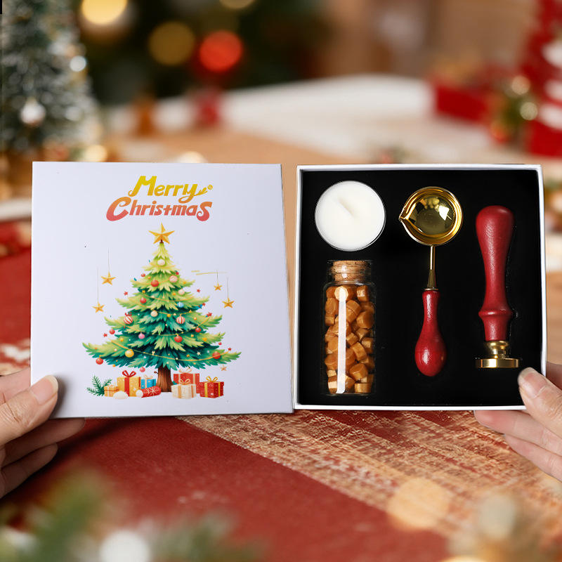 Ensemble de sceau à cire de Noël avec tampon métallique à manche rouge et bougie pour sceller les cadeaux