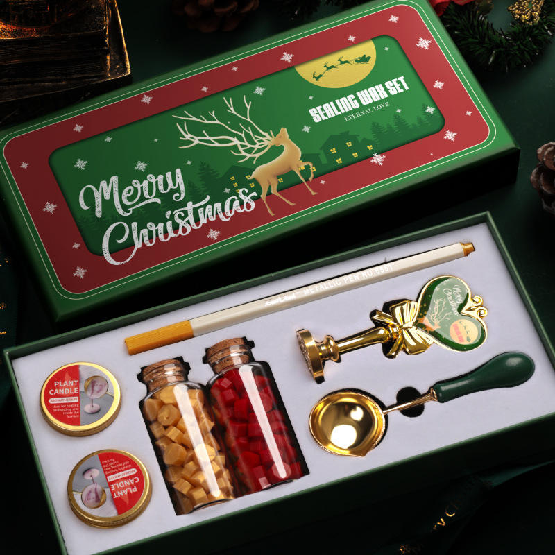 Ensemble de cire à cacheter de Noël avec outils en métal, kit cadeau pour décorations de fêtes