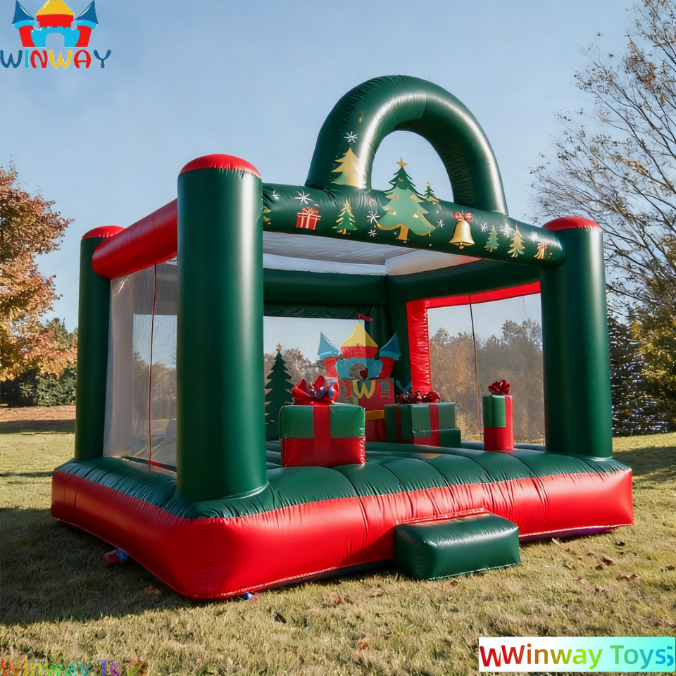 Traîneau de Noël obstacle gonflable et toboggan combo bonhomme de neige de Noël maison de rebond gonflable pour les vacances