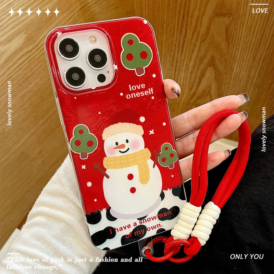 Coque de téléphone avec cordon de cou en forme de bonhomme de neige de Noël, adaptée à l'Iphone 16 15, bord souple, Huawei Xiaomi 14 vivo OPPO, coque de protection, Funda Capa