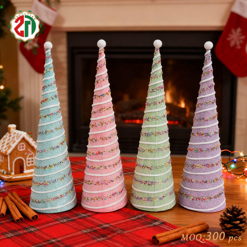 Collection de décorations de Noël : Ornements en papier en forme de cône scintillant pour sapin, design festif, cadeau idéal pour les décorations de vacances