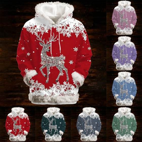 Christmas Sweatshirts for Women 2025 Fashion Pullover Tops Cozy Fleece Lined Print Casual Hoody Soft Warm Winter Hooded Top