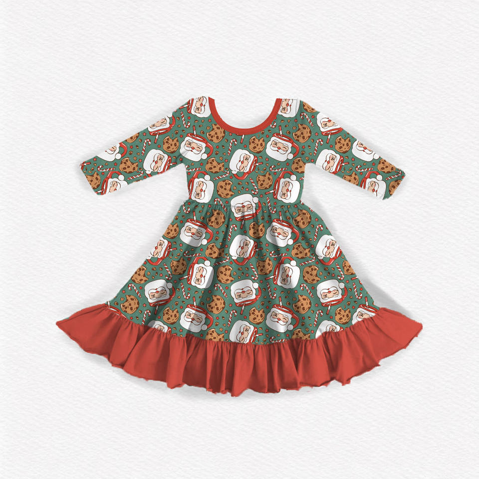 Mots-clés:Imprimé personnalisé À Manches Longues Filles Bébé Robe Enfants Coton Twirling Robe