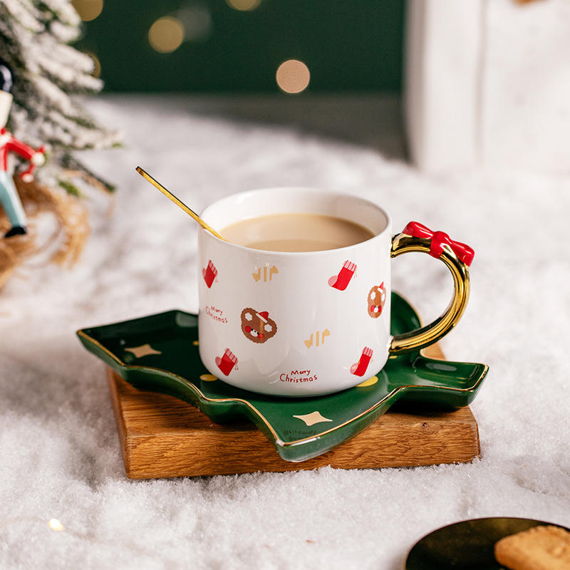 Tasses à café en porcelaine avec cuillère, motif sapin de Noël, tasse de Noël en céramique - Matériau en verre