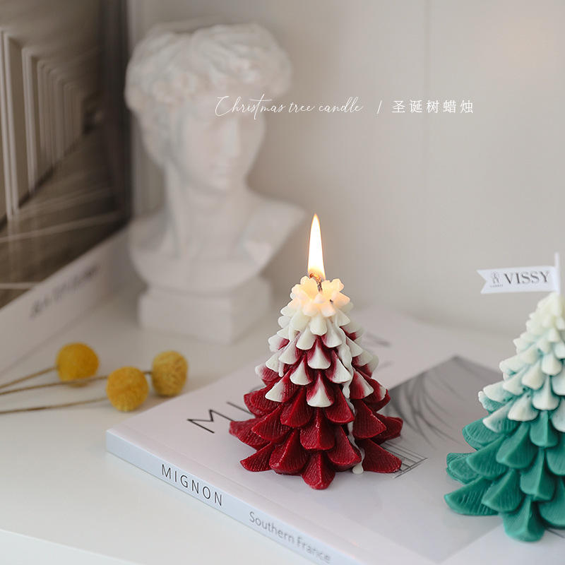 Christmas Tree Scented Candle Red And Green Paraffin Novelty Candle For Holiday Decor