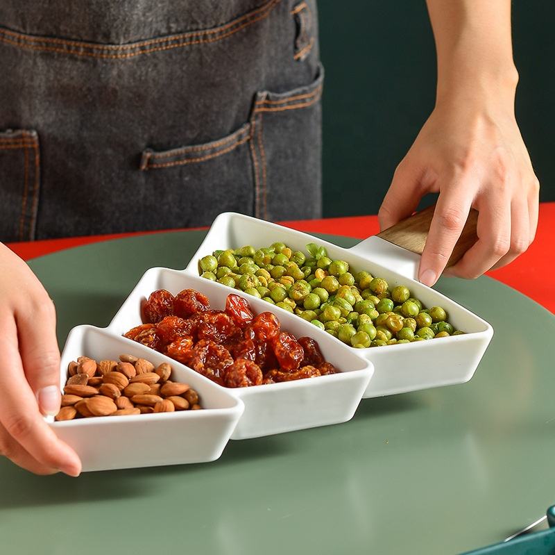 Plateau présentoir de service à thé assiette, arbre de noël séparée plateau de Snack créatif ménage manche en bois, Restaurant créatif d'après-midi assiette