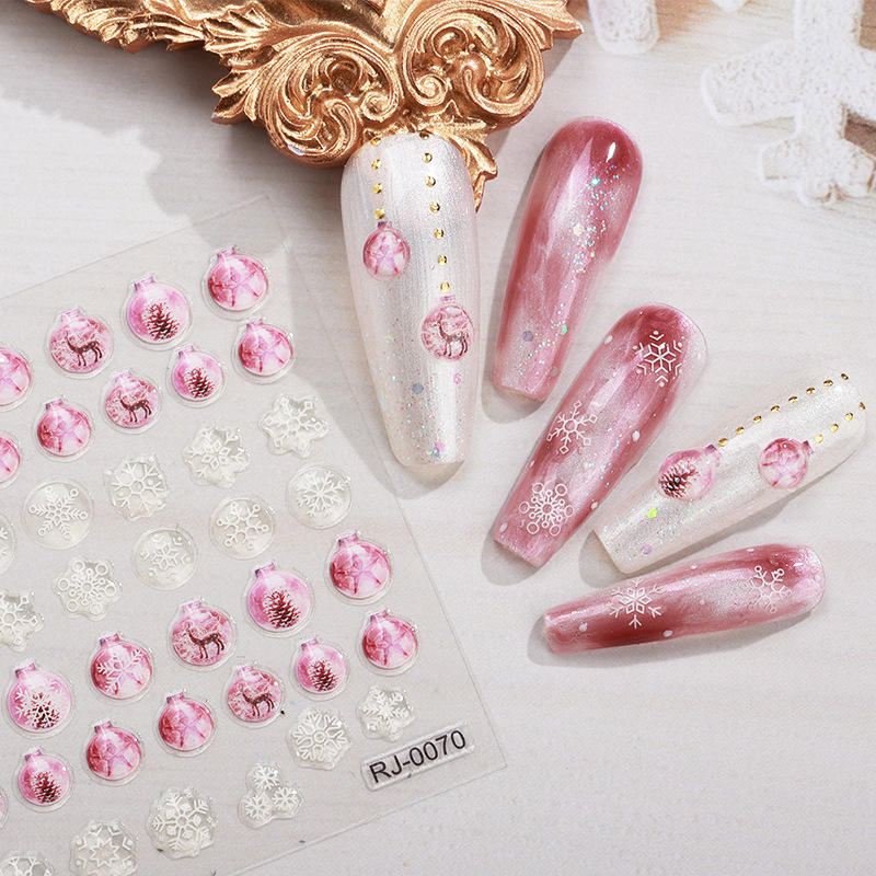 Arbre de Noël et flocon de neige autocollants pour ongles 5D colle de secours transfrontalière décalcomanies décoratives de Noël doux