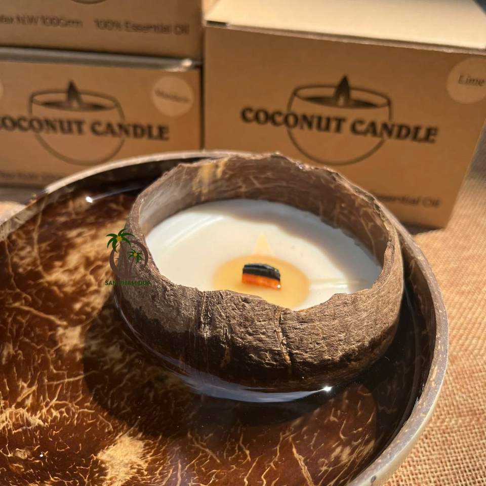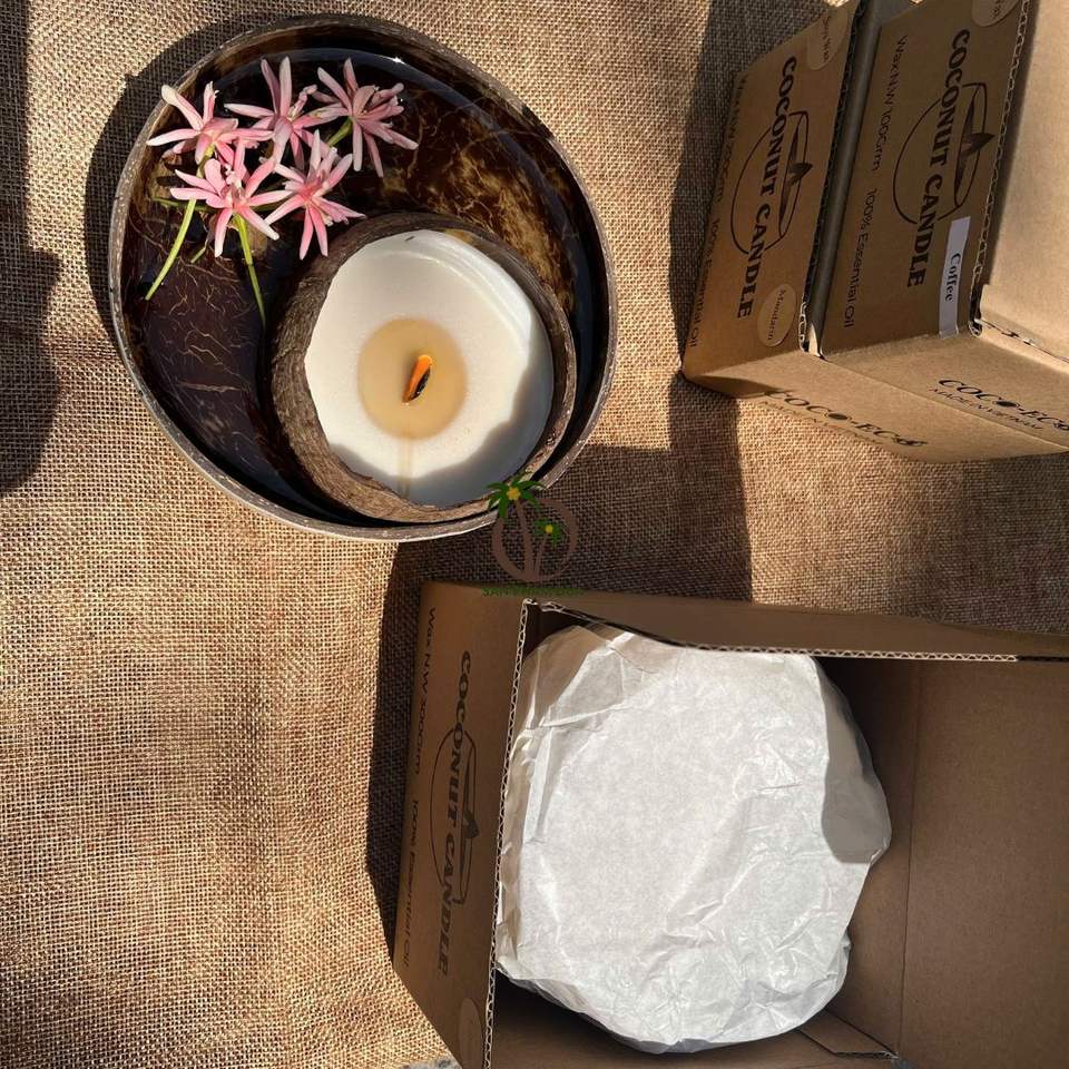 Bougie de noix de coco parfumée au bol de noix de coco écologique en gros de Noël faite à la main à partir de déchets agricoles