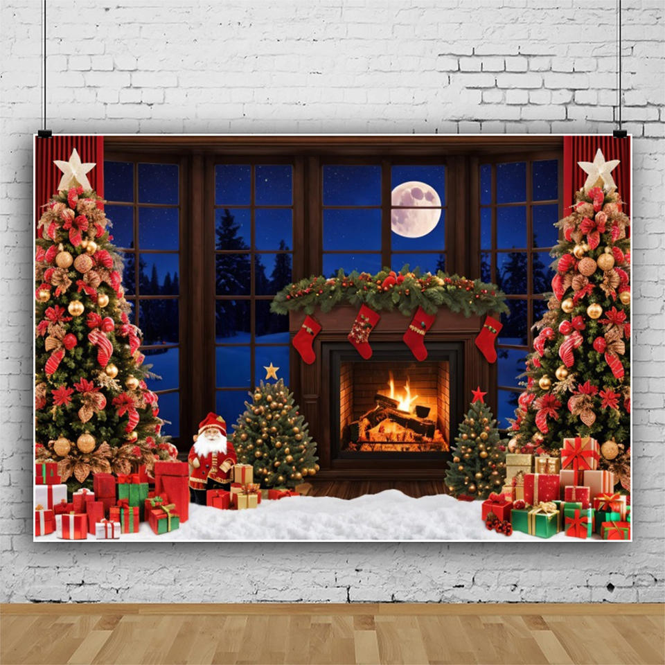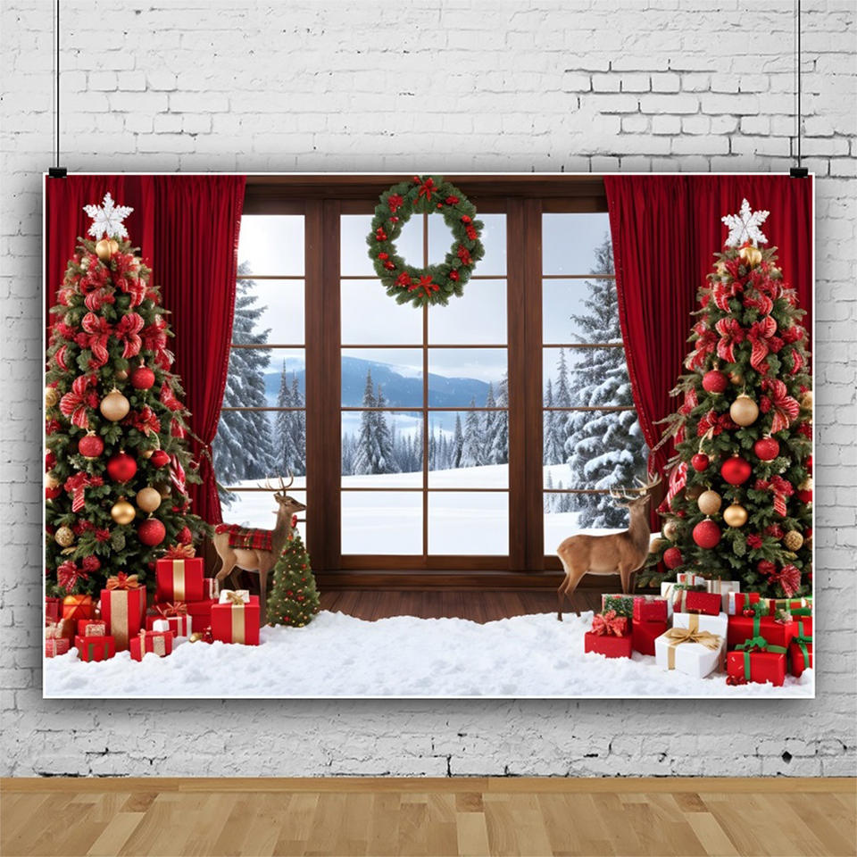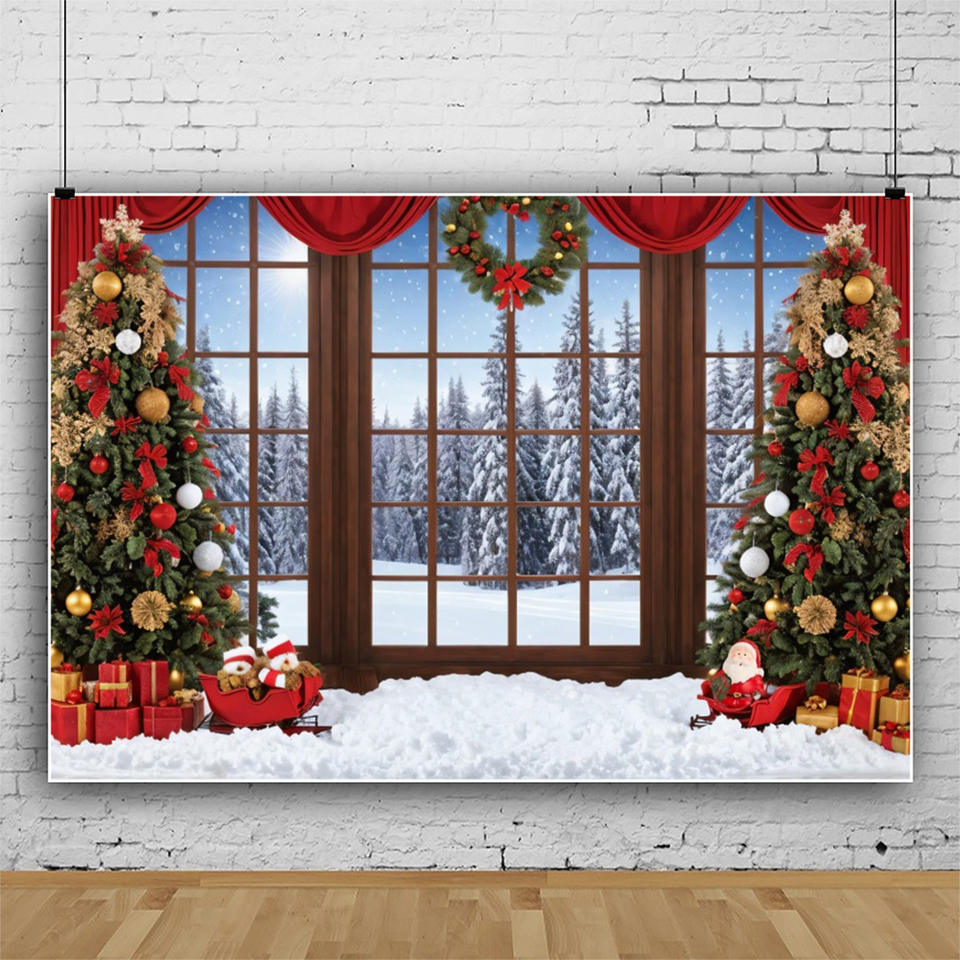 Noël fenêtre décors photographie bébé Portrait arbre de noël fête de famille photographie arrière-plan Photo Studio Photocall