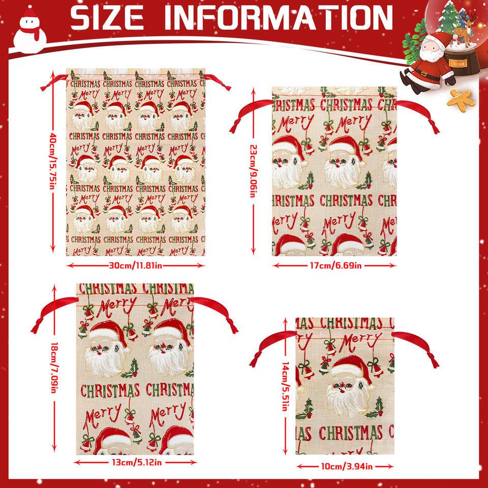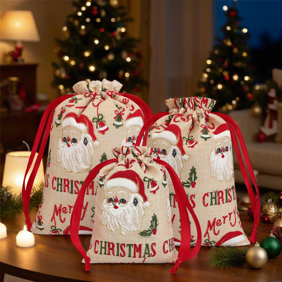 Sacs cadeaux en jute recyclables pour les fêtes de Noël et de la Saint-Valentin - Ensemble d'emballages de fêtes avec fermeture à cordon