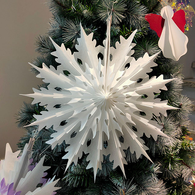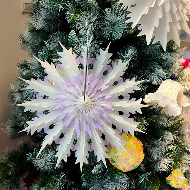 Description:Éventail flocon de neige teint par immersion de 17 pouces