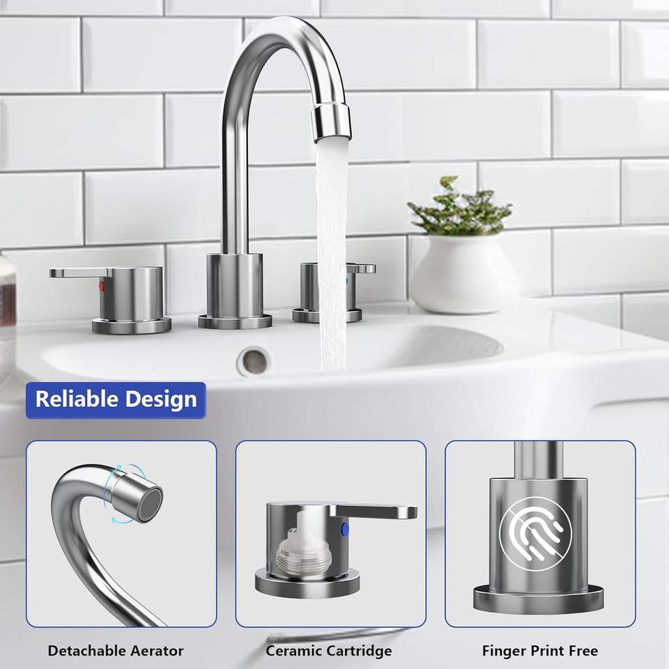 Robinet de lavabo de salle de bain chromé à 2 poignées, 8 pouces, 3 trous, avec bec pivotant à 360 degrés et ensemble de vidange à clapet, pour lavabo de vanité