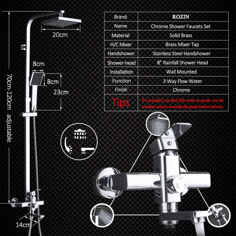 Ensemble de robinets mitigeurs de salle de bains et de douche de 8 ", avec pomme de douche effet pluie, bec de baignoire, robinet d'évier, à 3 voies, à poignée unique, Chrome