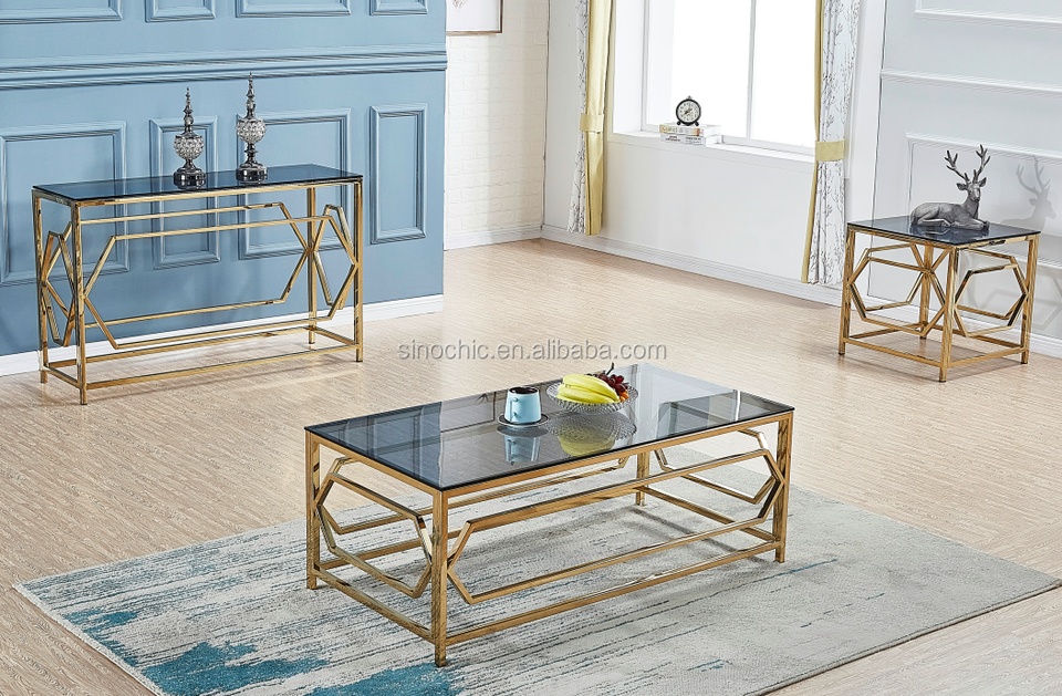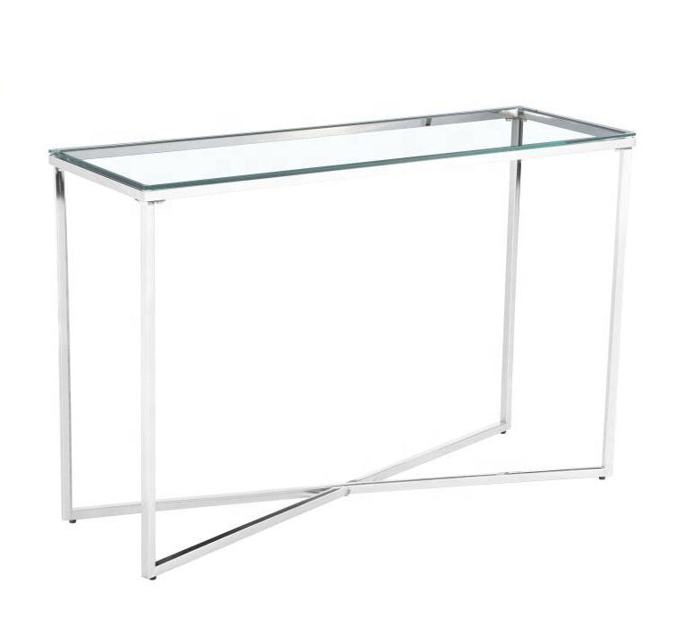 Nom du produit:Console d'angle chromée, console longue avec miroir, transparente