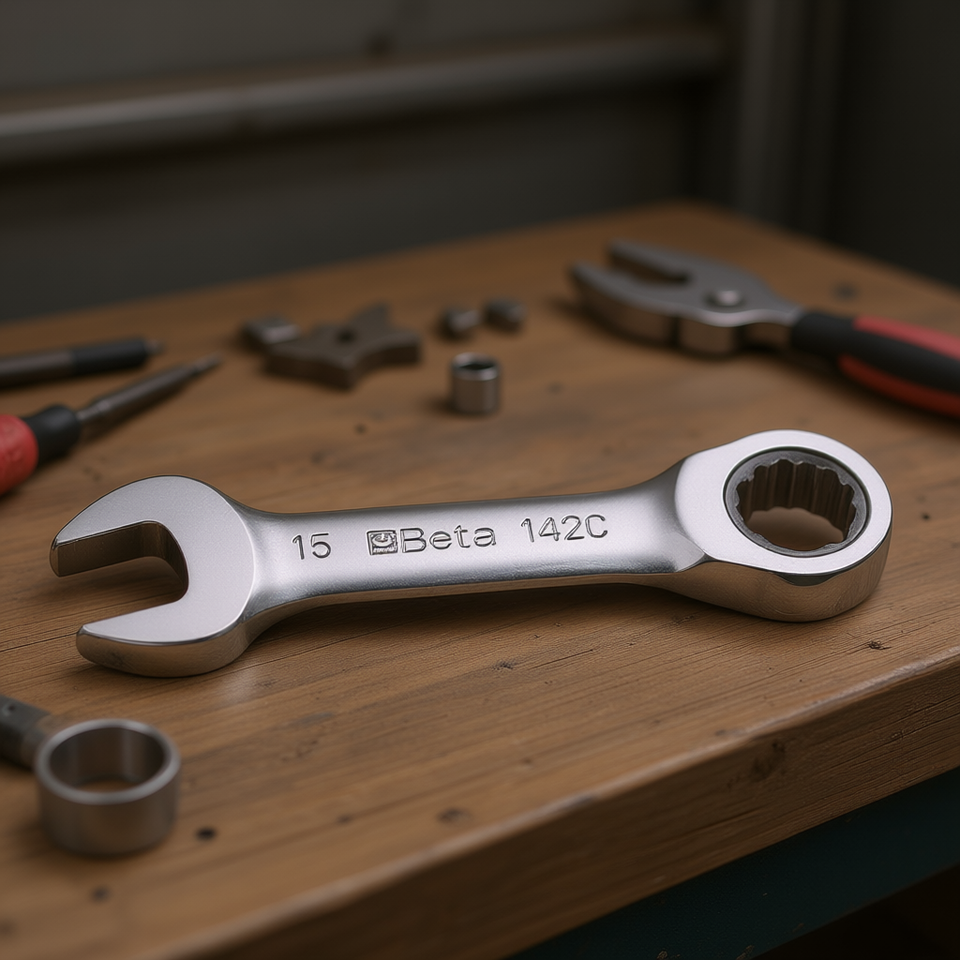 Clés à cliquet combinées à extrémité ouverte et à extrémité annulaire chromées