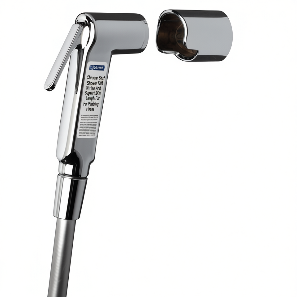 Kit de douche à robinet d'arrêt chromé avec tuyau et support de 20 cm de longueur pour tuyaux de plomberie