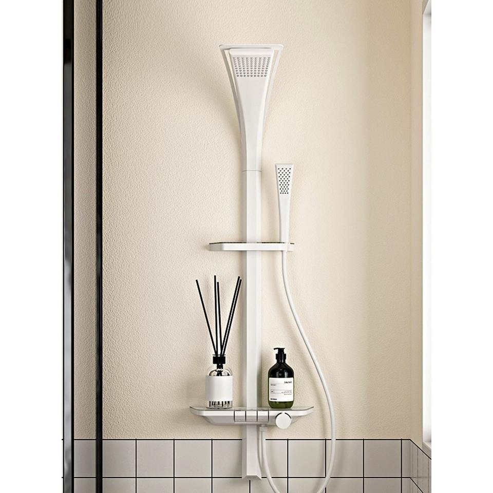 Robinet thermostatique chromé, ensemble de douche en cuivre, barre coulissante, pulvérisation de massage, montage mural, colonne de douche pour salle de bain, usage domestique