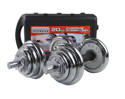 Kit d'haltères réglables chromés en coffret cadeau, 20 kg, haltères réglables