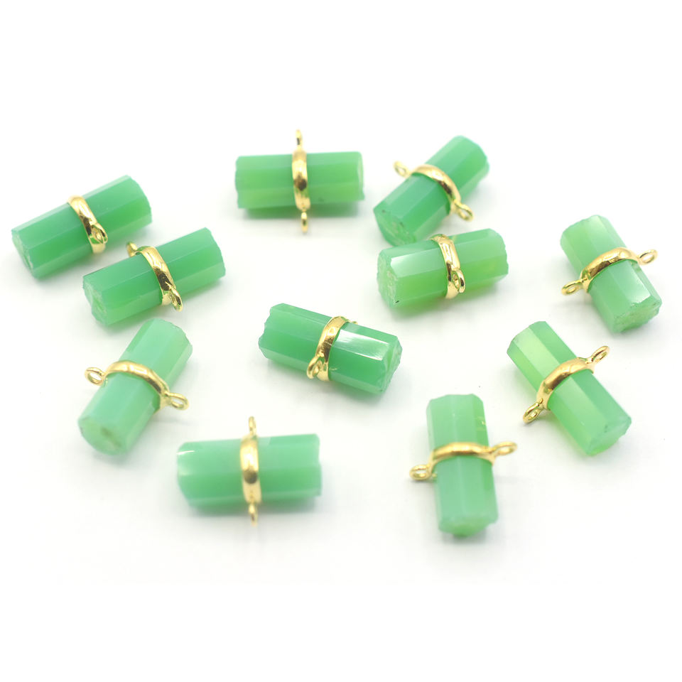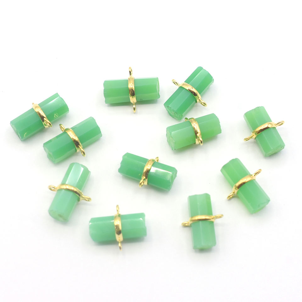 Product Name:Chrysoprase Chalcedony Pencil Shape Silver Bezel Gold Plated Connector