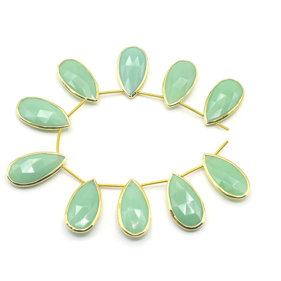 Product Name:Chrysoprase Chalcedony Gold Plated Top Side Drilled 10 Beads Strand