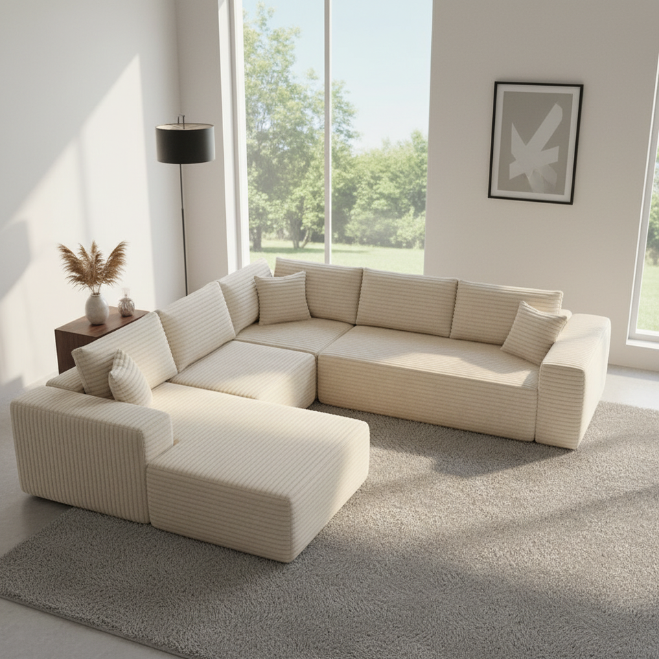 Canapé modulaire en velours côtelé épais, canapé nuage, canapé surdimensionné à rayures épaisses en velours côtelé, canapé en forme de L à combinaison libre, 3 à 6 places