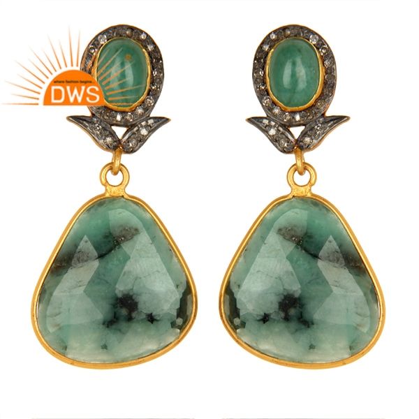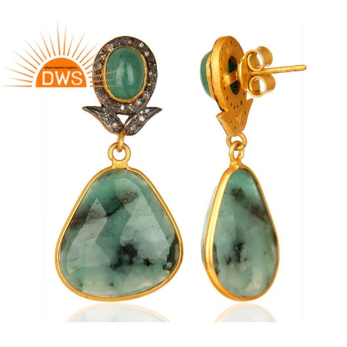 Boucles d'oreilles en or plaqué argent massif, vente en gros, bijoux d'émeraude et de diamant, pendentifs, fabrication de bijoux