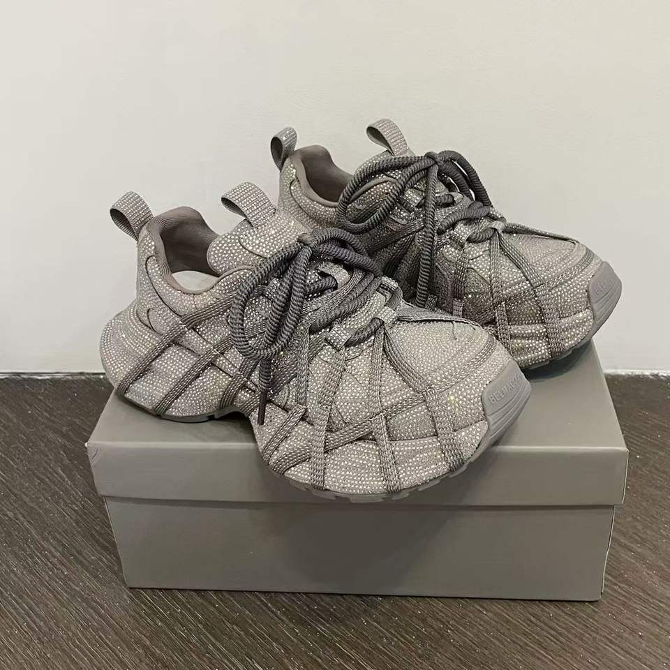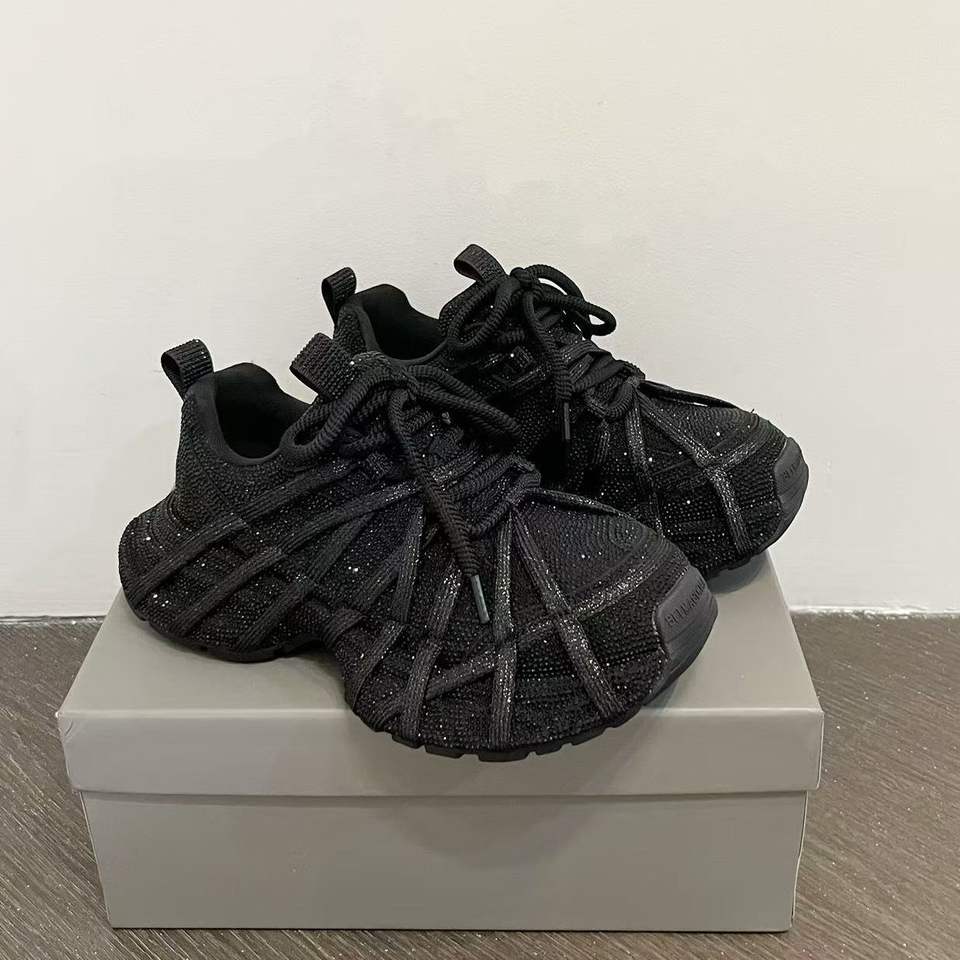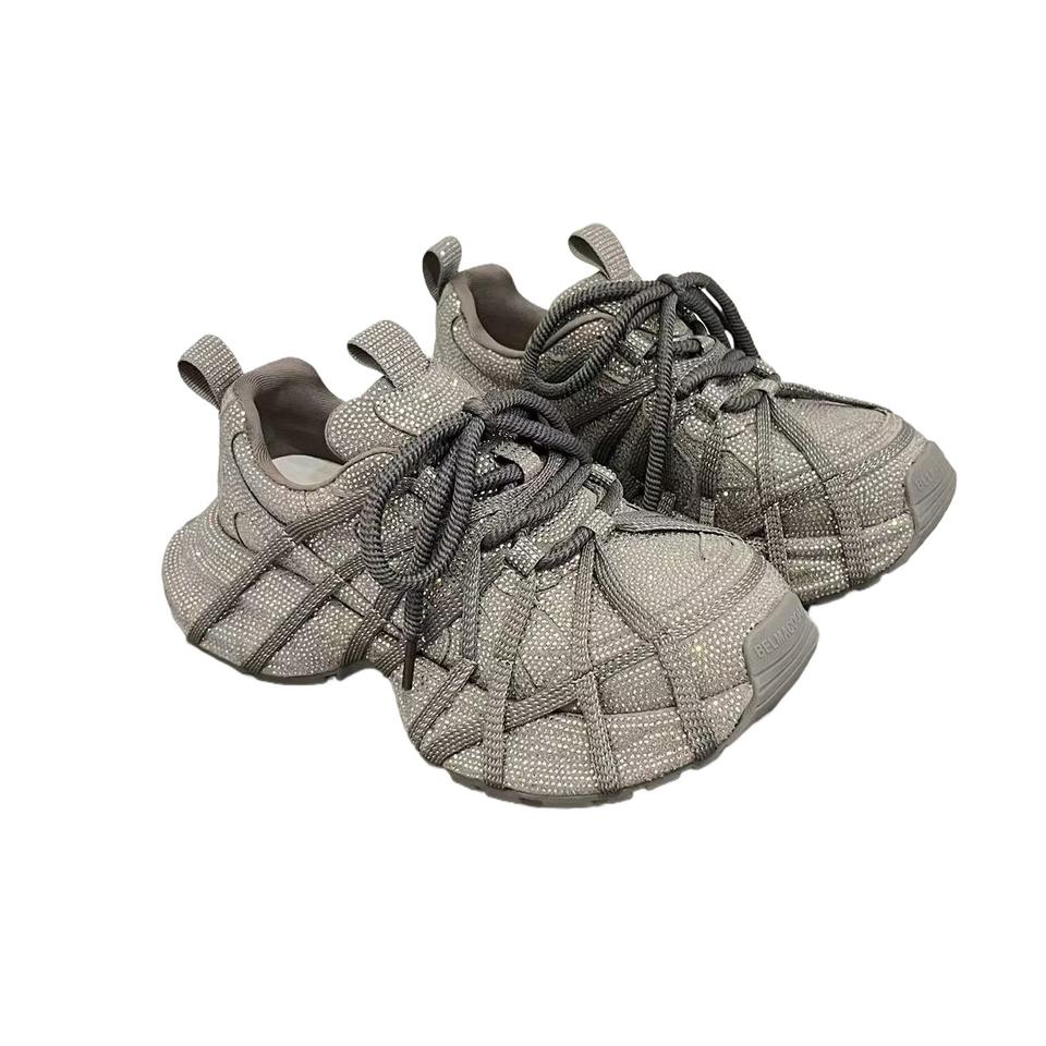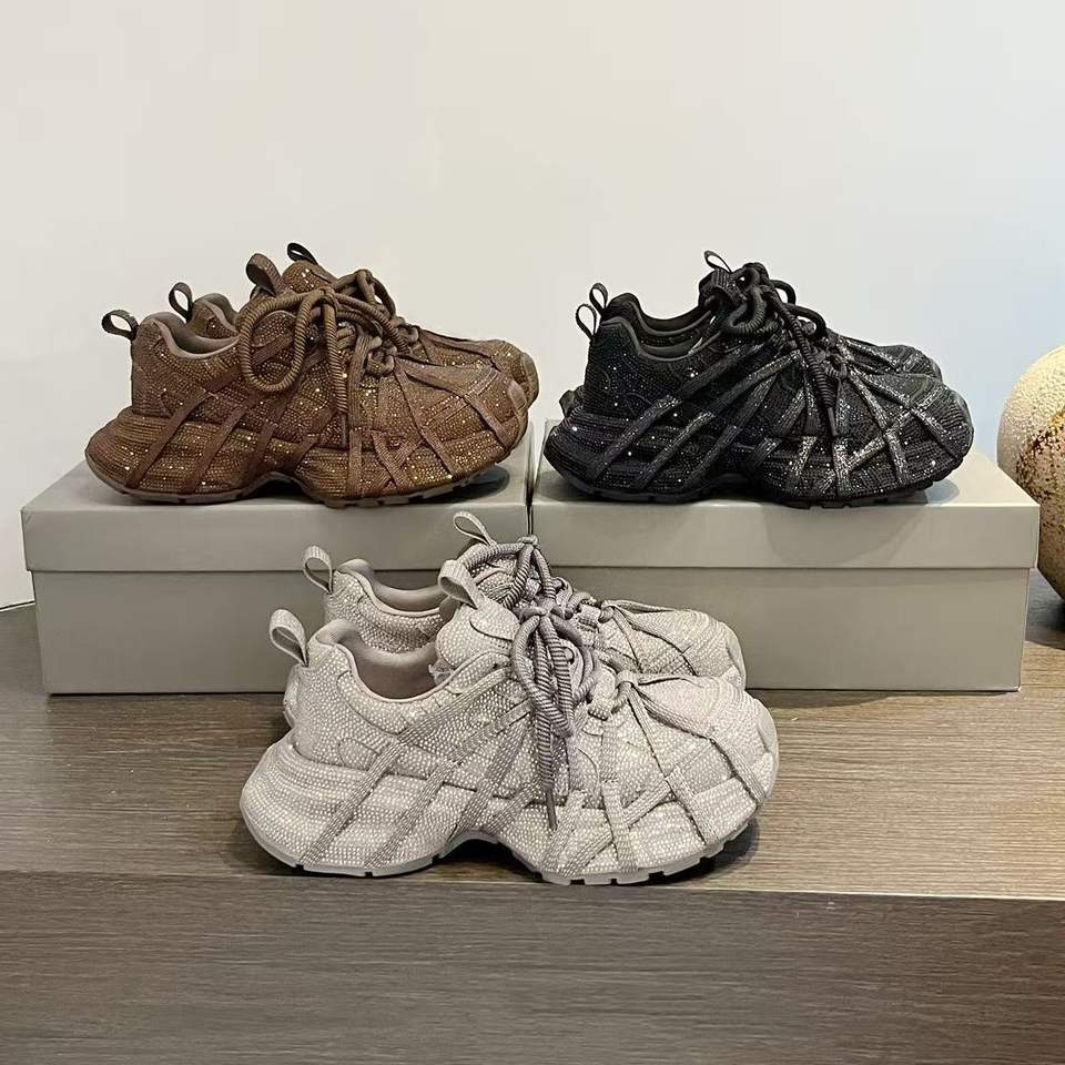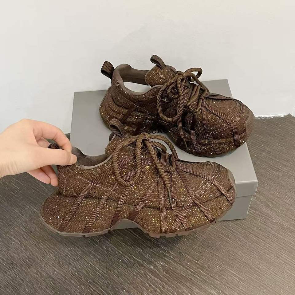 Chaussures de sport décontractées à plateforme avec lacets et strass pour femmes, couleur unie marron gris noir
