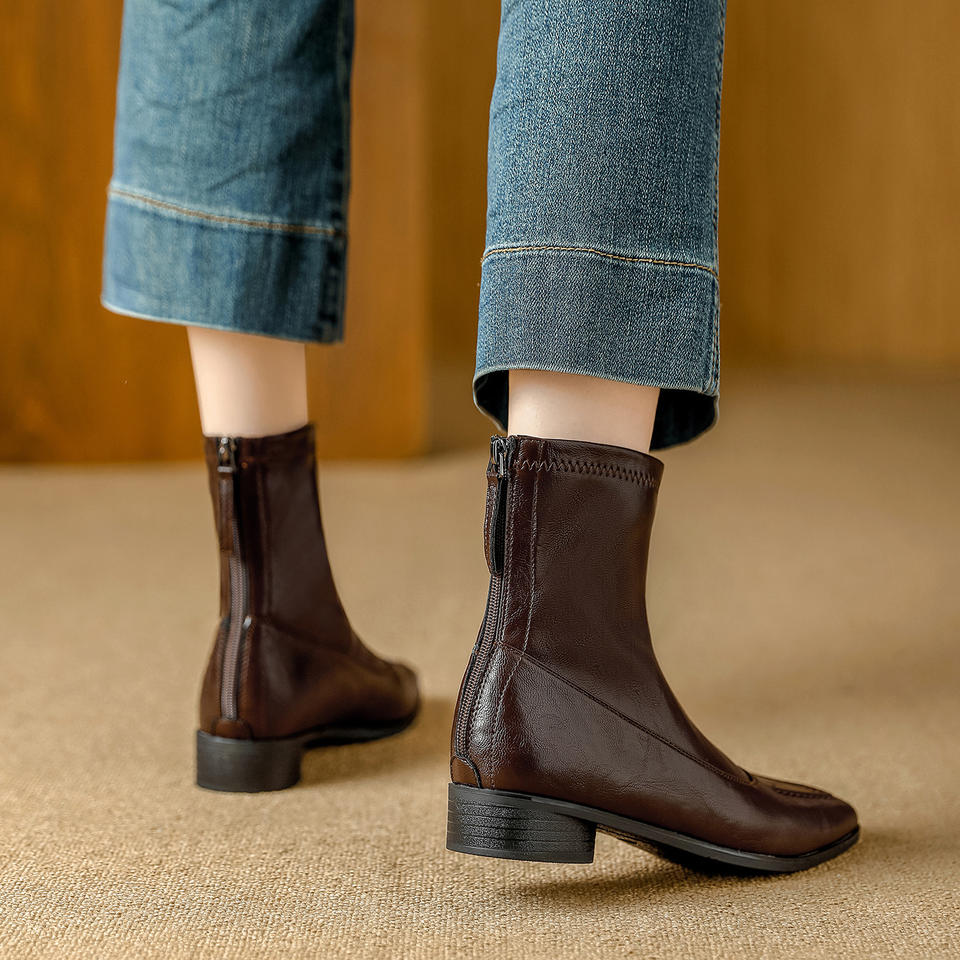 Chunky-Heeled Snow Boots High Heel Fur Midsole Anti-Slip Soles-Fashionable Versatile Elegant Slim Ankle Boots for Autumn/Winter