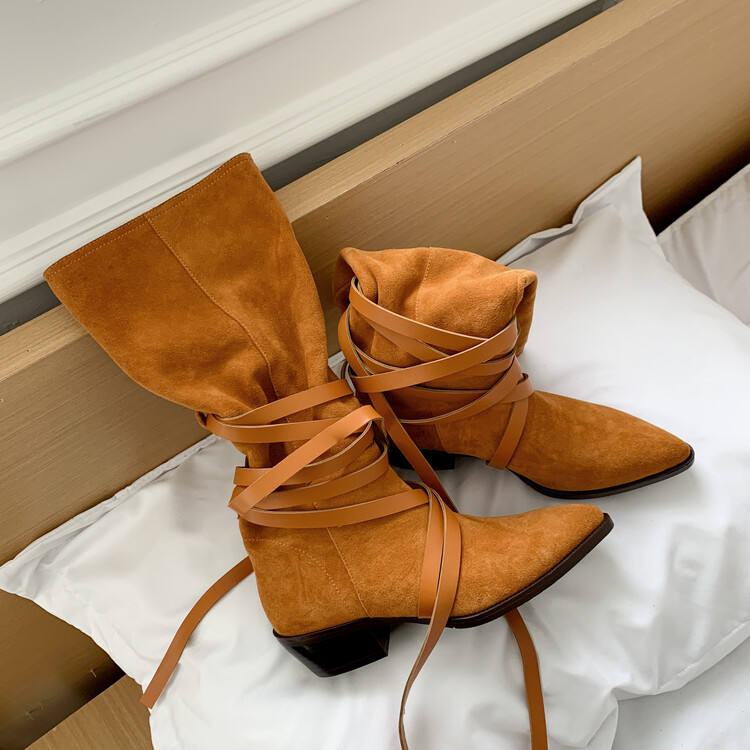 Cialisa – bottes hautes en cuir véritable faites à la main pour femme, chaussures à bout pointu et talons mi-hauts, nouvelle taille 40, automne hiver 2022