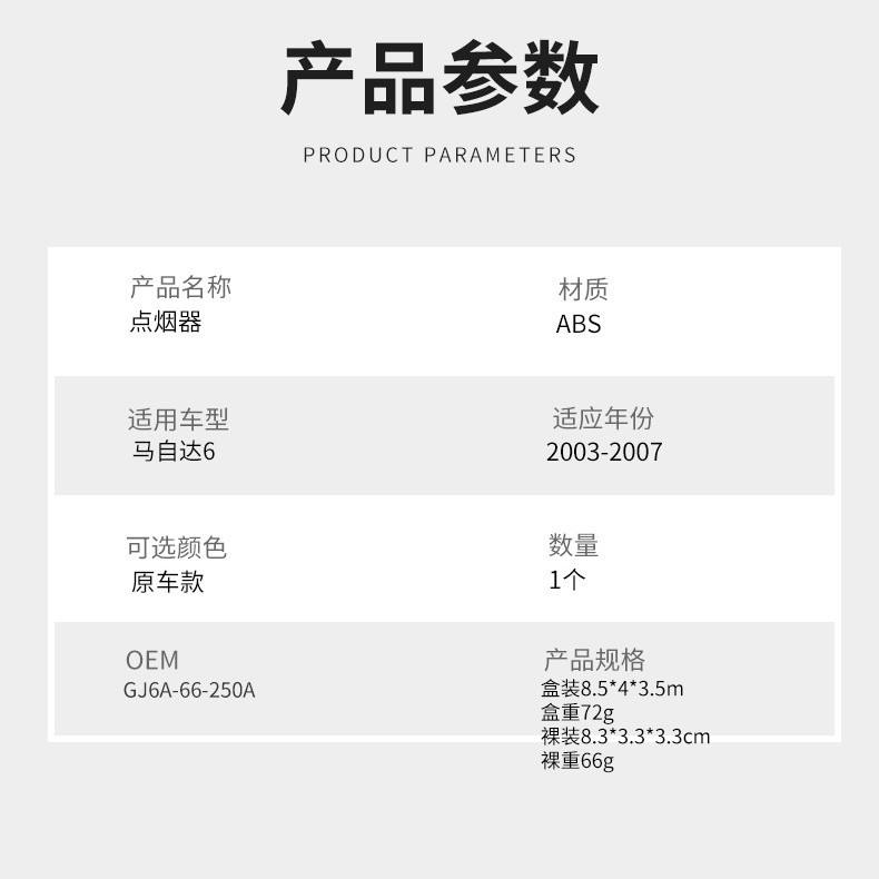 Bouton d'allume-cigare pour Mazda 6 2003-2007 GJ6A-66-250A, pommeau de levier de vitesse en plastique pour voiture