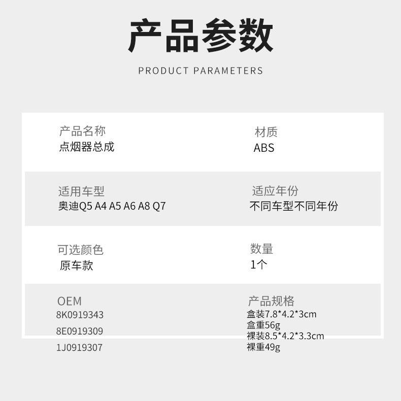Prise allume-cigare 8K0919343 pour Audi A4 A5 A6 A8 Q7, chargeur de voiture 12V