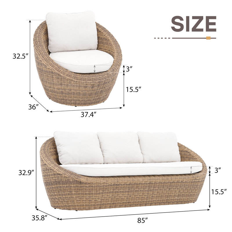 Cigi contemporain 5 personnes rotin canapé ensemble PE rotin osier pour arrière-cour patio élégant extérieur loisirs meubles avec coussins