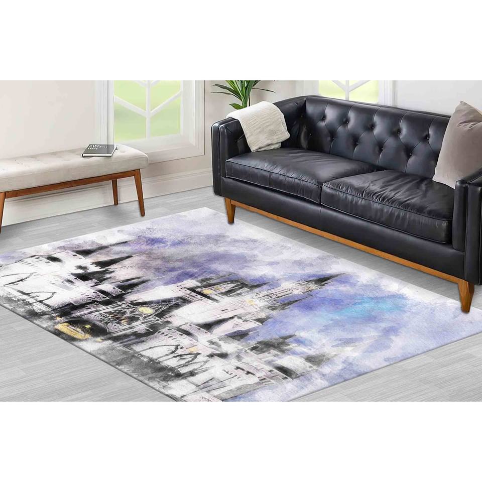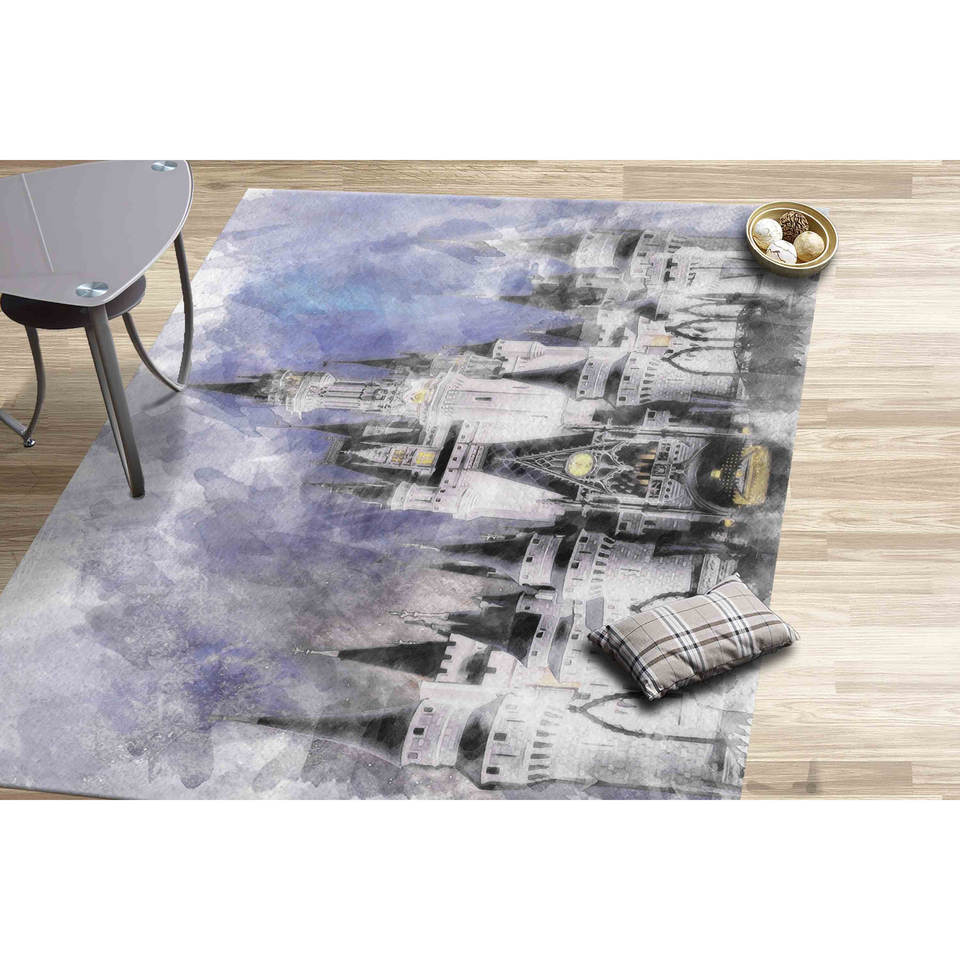 Tapis Château de Cendrillon pour salle à manger, en laine imprimée colorée avec motif patchwork, support en latex écologique