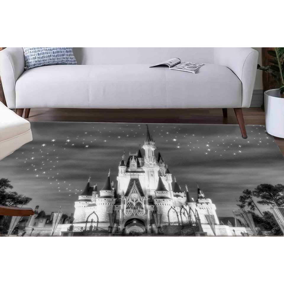Tapis Château de Cendrillon : Motif Ciel Étoilé, Lavable en Machine, Tapis en Chenille