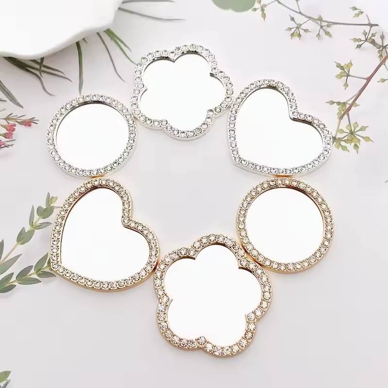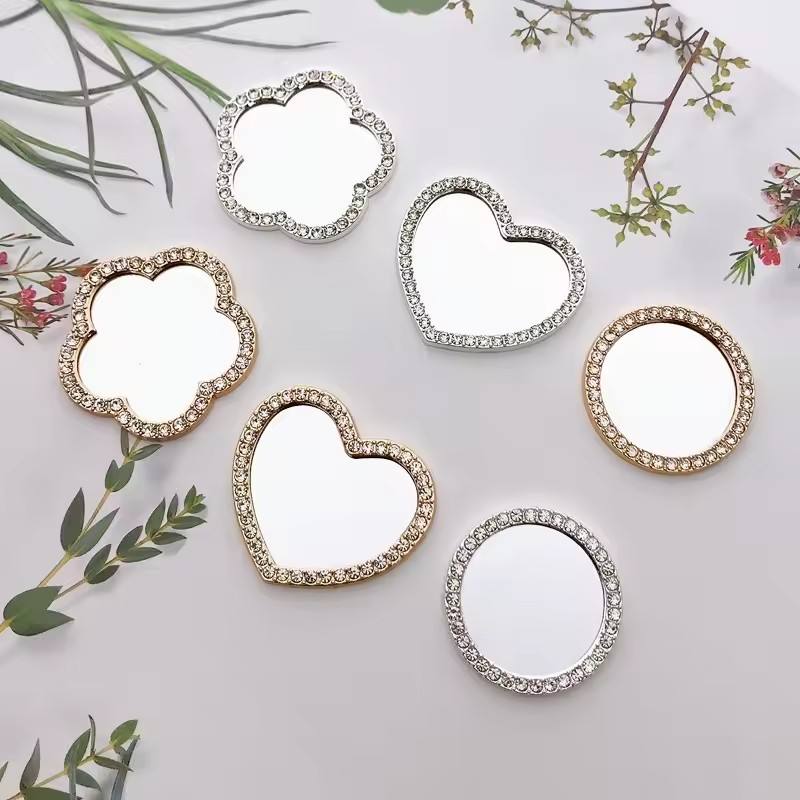Miroir de maquillage circulaire à fleurs incrusté de diamants, design amour, accessoires de bijoux DIY, style contemporain pour le voyage