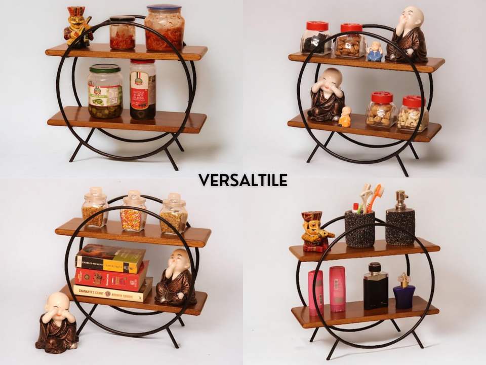 Circular Home and Kitchen Organizer Rack/Storage Shelves/Spice Shelf/Wooden Organizer for Office, Bedroom |Mango Wood and Iron
