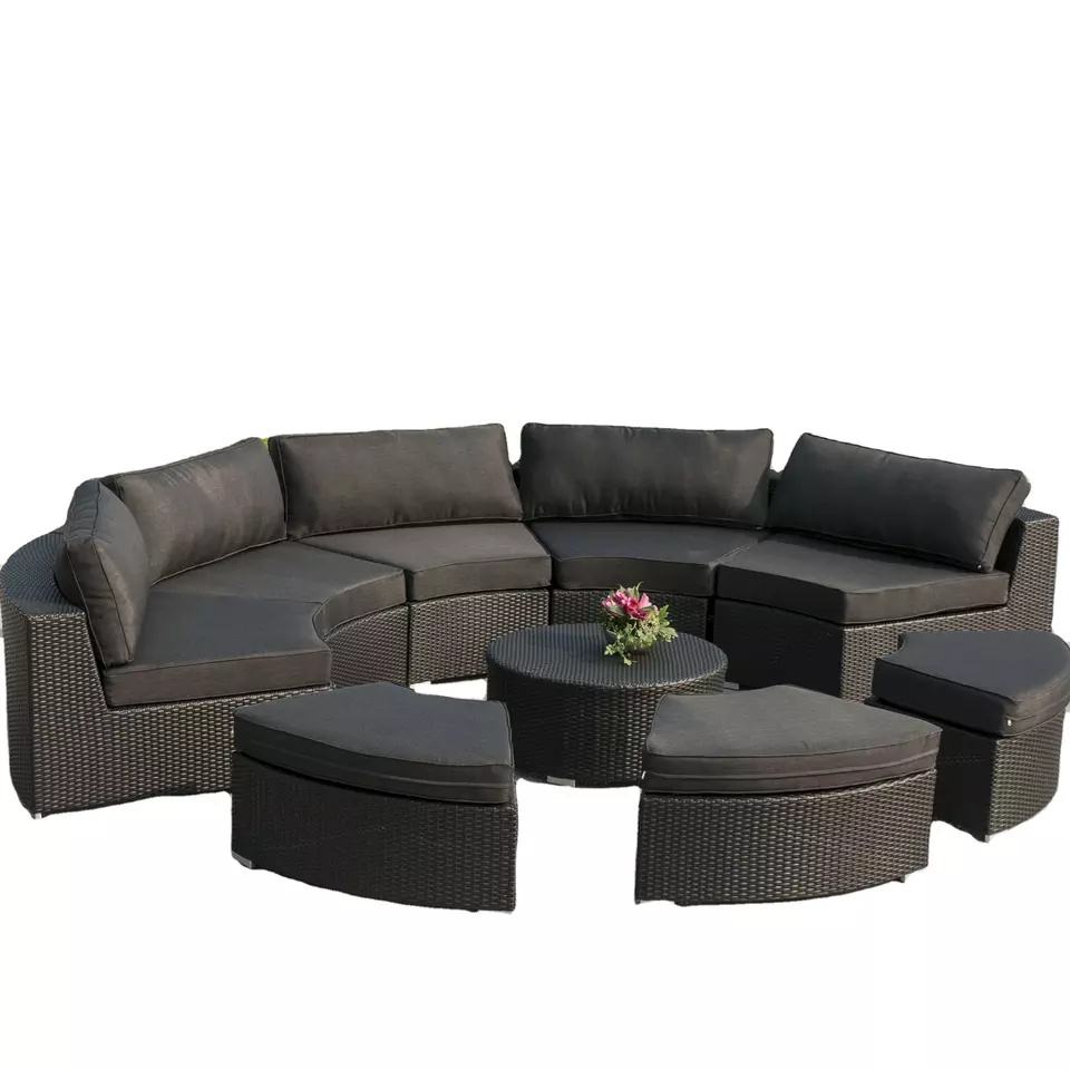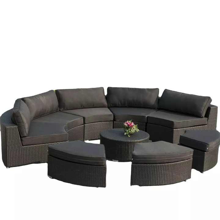 Ensemble de canapés de jardin en rotin et osier, Patio circulaire, meubles en demi-cercle, liquidation d'angle en Aluminium, vente d'hôtel en plein air, métal moderne