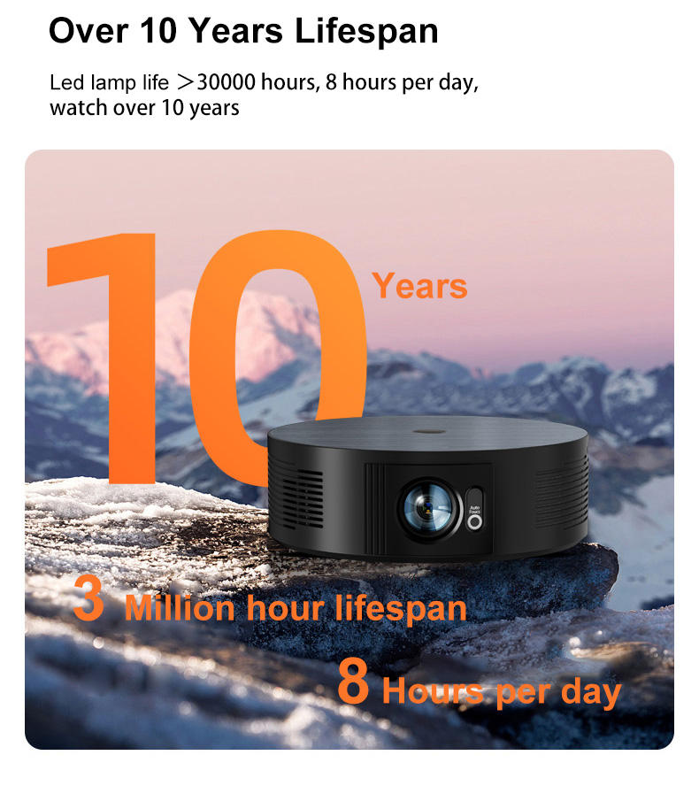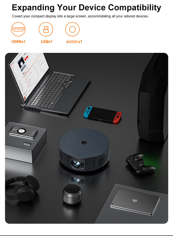 Mini projecteur de forme circulaire: visuel HD, projecteur de home cinéma et de bureau de conception portable