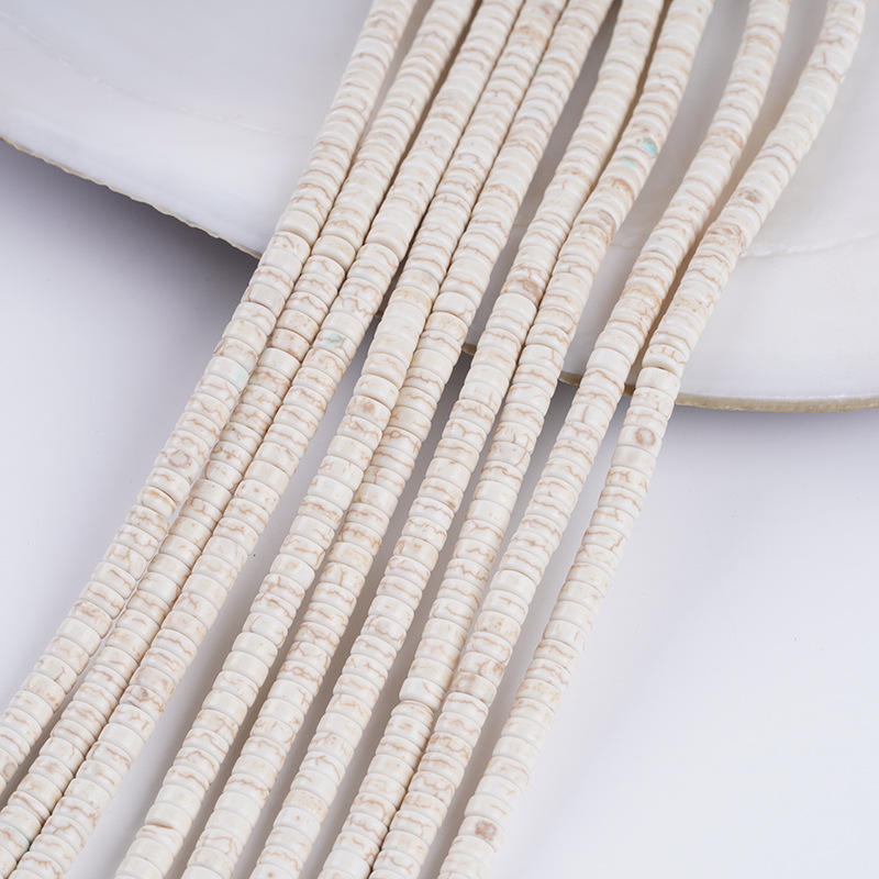 Perles d'espacement circulaires en pierre de pin synthétique blanche, faites à la main, pour bracelets et colliers DIY, composants de bijoux transfrontaliers