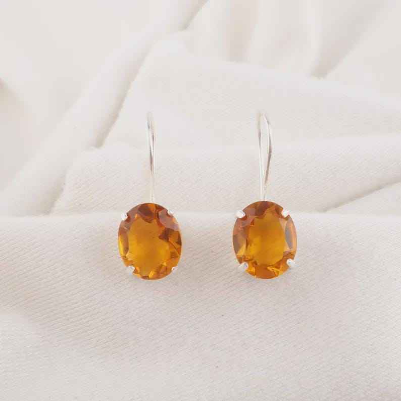 Citrine Earrings Oval Gemstone 925 Sterling Silver November Birthstone Jewelry Handmade Elegant Gift For Women