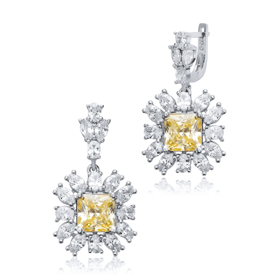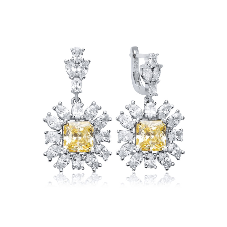 Citrine Carré CZ Fleur Conception Turc À La Main En Gros 925 Boucles D'oreilles En Argent