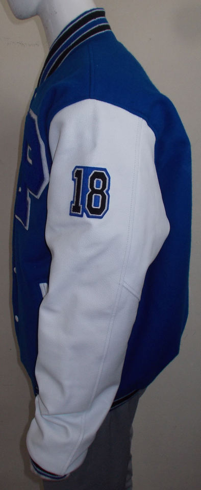 Blouson universitaire en laine brodé pour homme, blanc et bleu, col montant, coupe-vent, hiver
