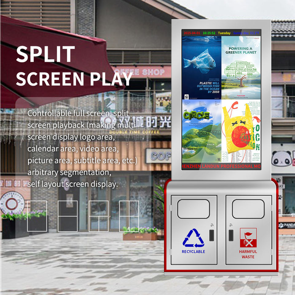 City Street tri intelligent 2 compartiments poubelles énergie solaire Double défilement publicité LED boîte à lumière poubelle