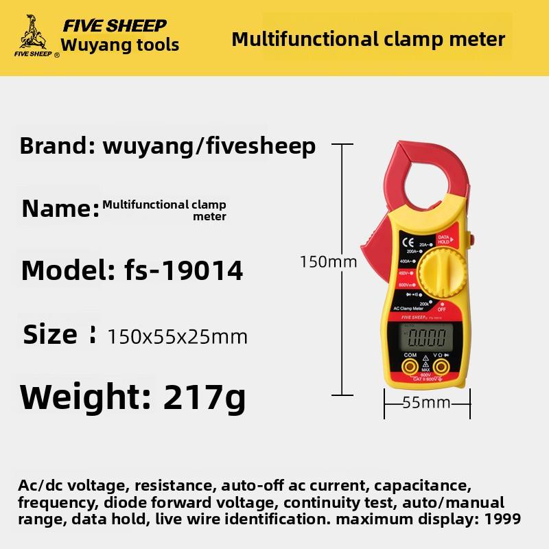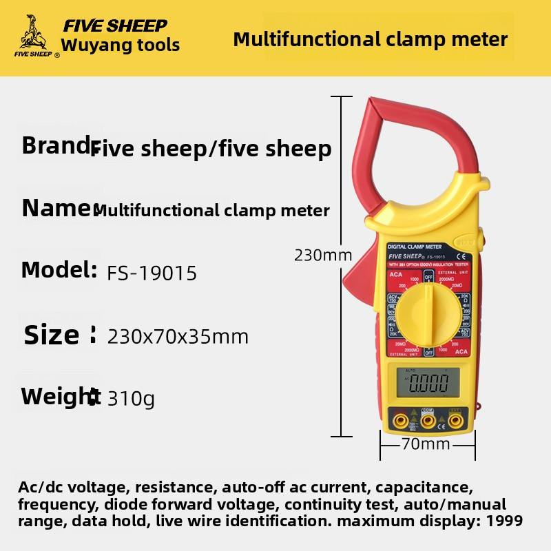 Multimètre à pince 600A/600V numérique pour l'entretien électrique automobile, diagnostic de circuit, test de courant, de tension et de résistance