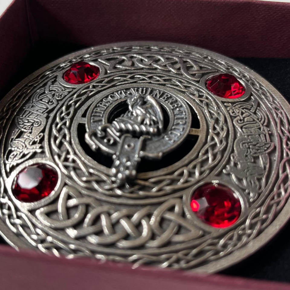 Broche à motif écossais Clan Crest pour tenue Highland, broche gravée, tartan traditionnel de haute qualité pour kilt