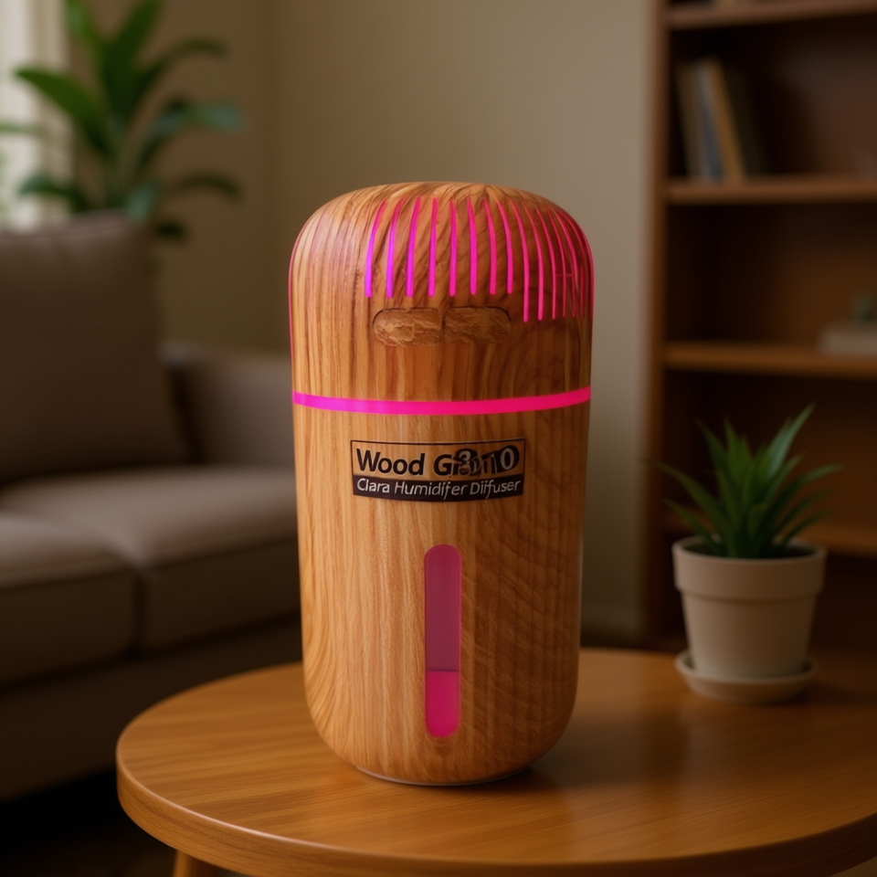 Diffuseur humidificateur Clara à grain de bois 310 0,5L, alimenté par USB, LED à changement de couleur, aromathérapie domestique, portable, de table