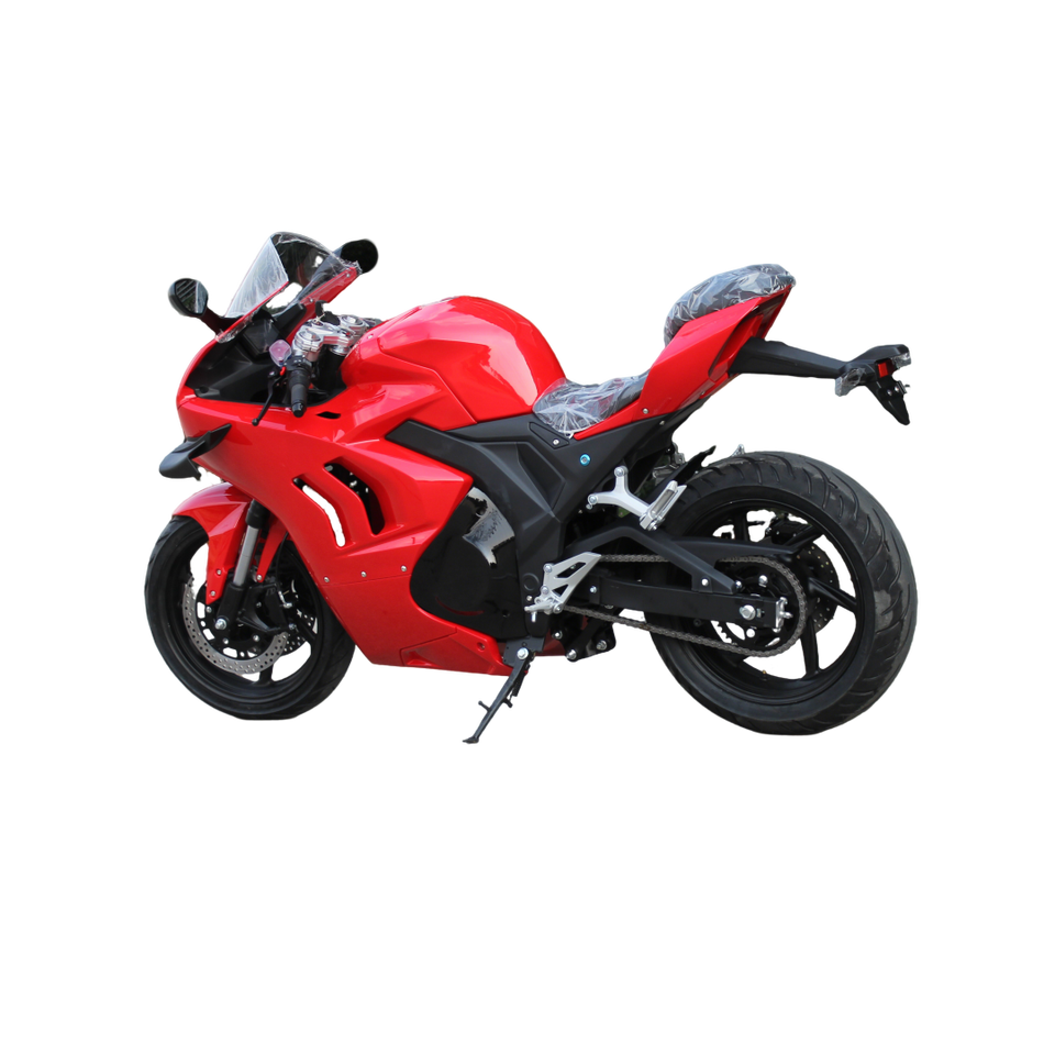 Moto électrique Clarence Racing, moteur sans balais, batterie lithium 72V, temps de charge de 6 à 8 heures, vitesse de 150 km/h, autonomie de 60 à 100 km, 200 kg