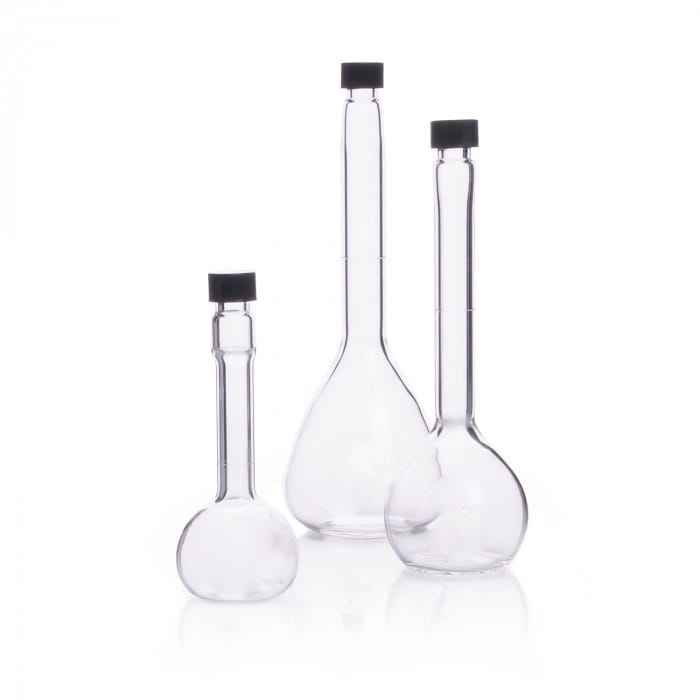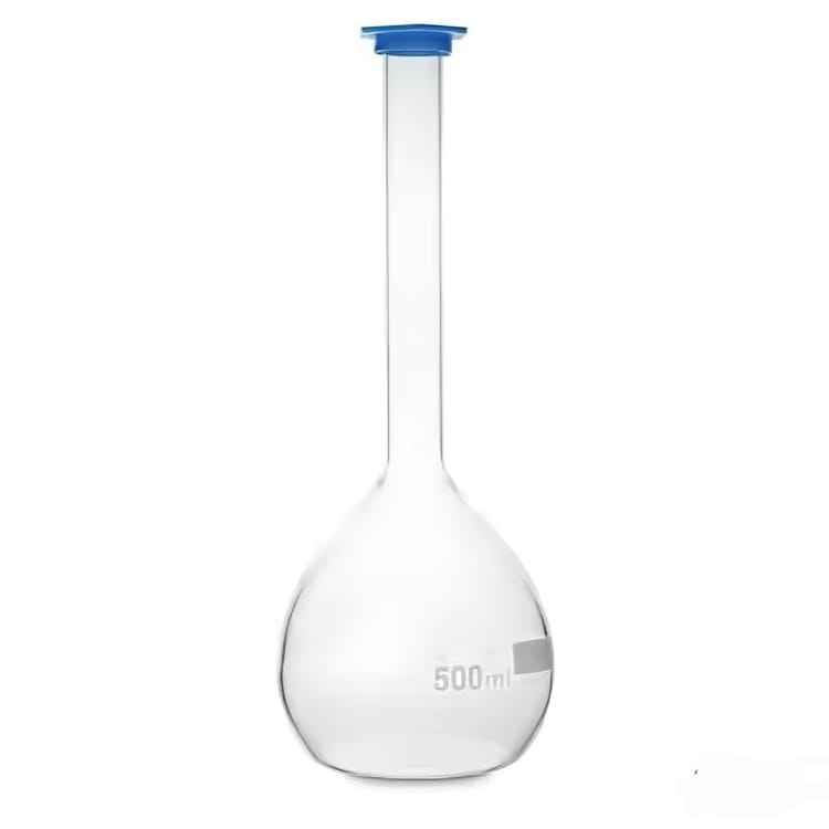 Fiole jaugée de classe A USP 200ml avec bouchon ergonomique en polyéthylène et graduation bleue
