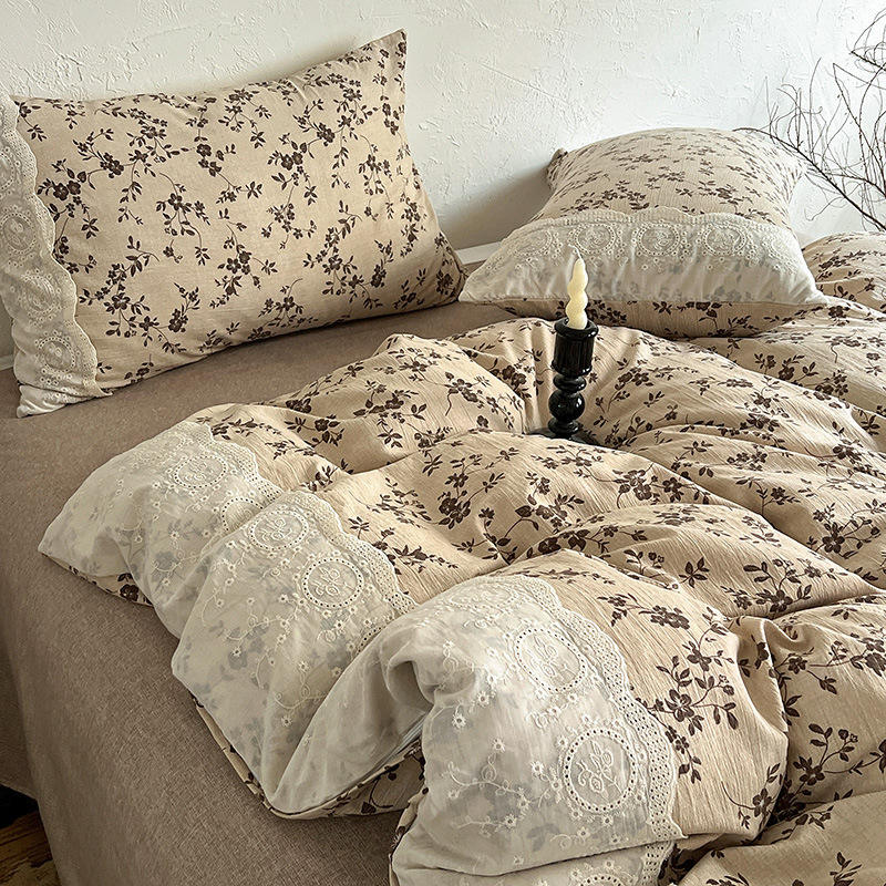 Ensemble de couette en tissu de lin à volants de qualité supérieure, simplicité moderne, résistant à l'eau, 300 fils, rembourrage en laine, 11 pièces, épaissi, dentelle